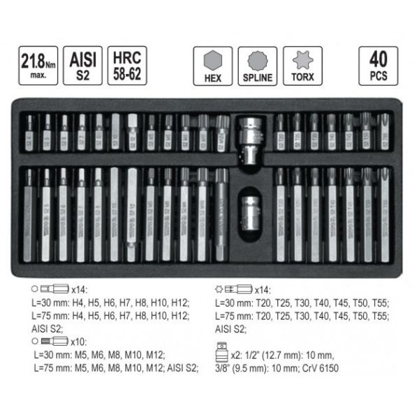Otsikud IMB, TORX, SPLINE 40-osa YATO YT-0400